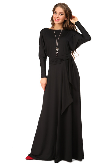 Фото товара 9565, черное длинное платье с поясом