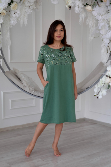 Фото товара 20944, зеленое свободное платье с карманами